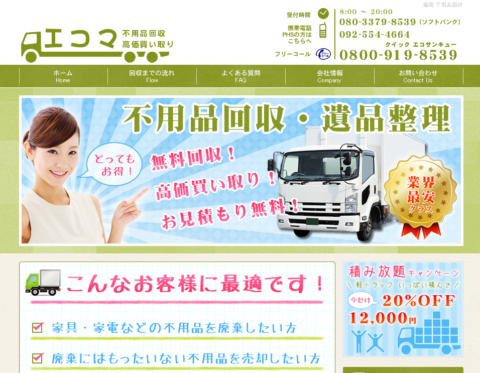 福岡市ならびに福岡県内の不用品回収業者のエコマの特徴や口コミ、料金をご紹介します。